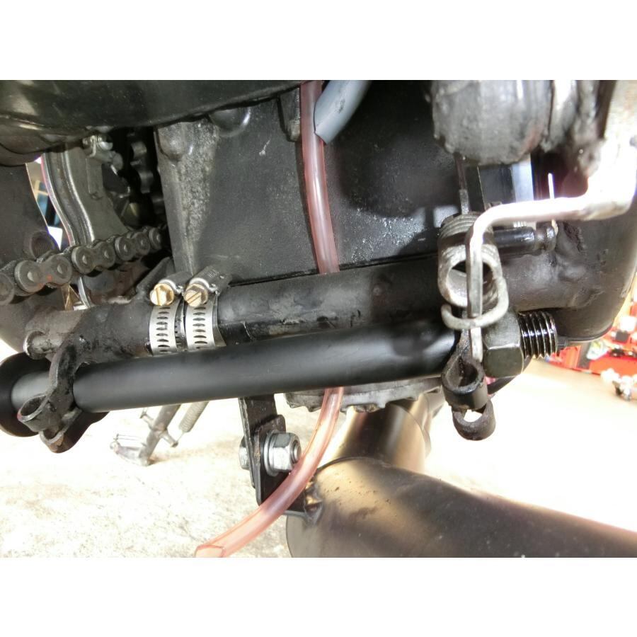 FX400 FX550のメインスタンドを取り外し、集合管を取り付けた車両を水平に保管し、エンジンおよびキャブレターの性能維持が容易になります。